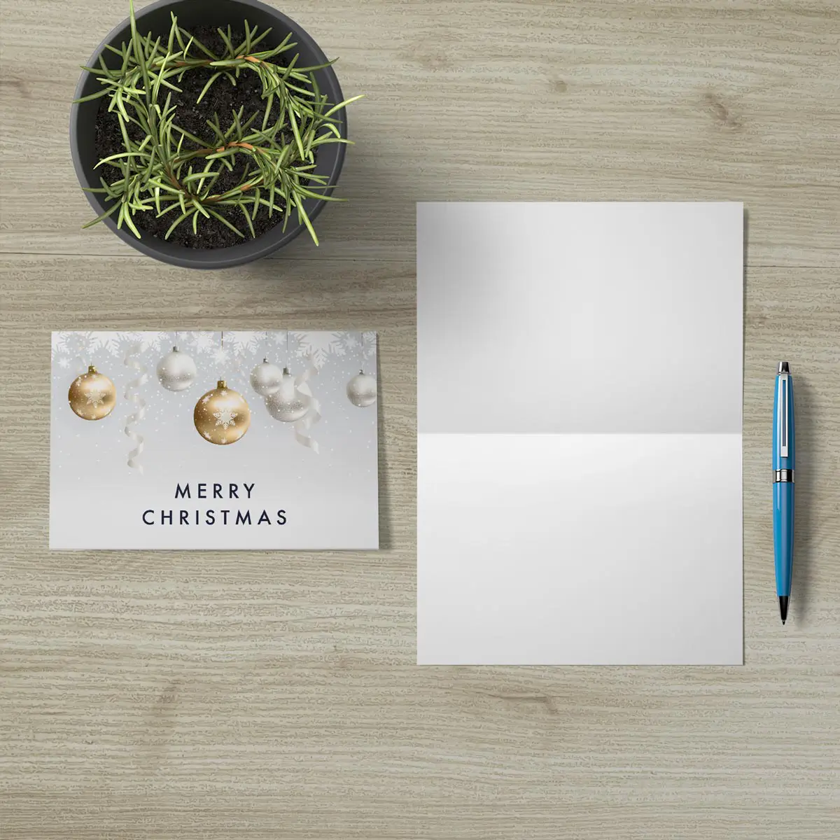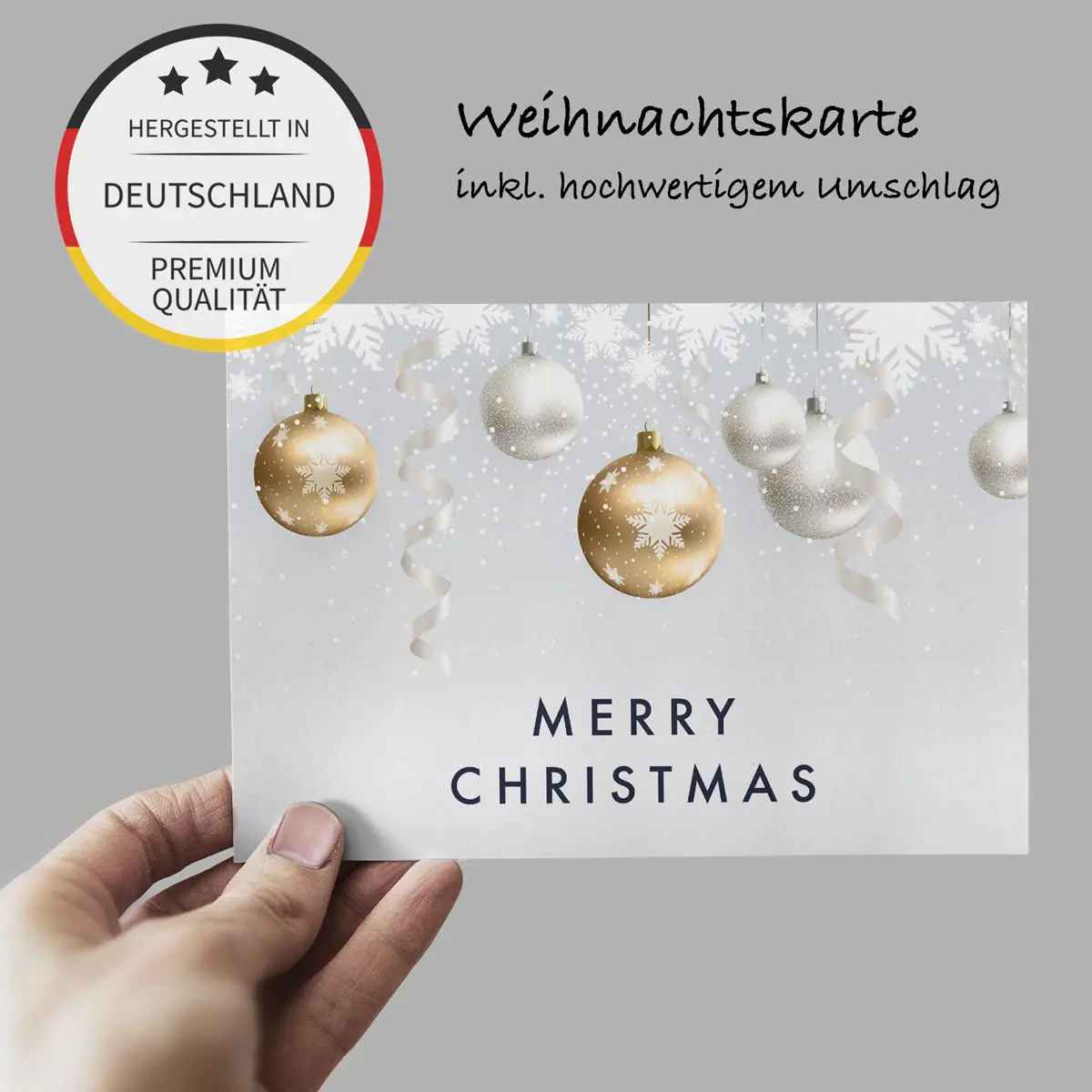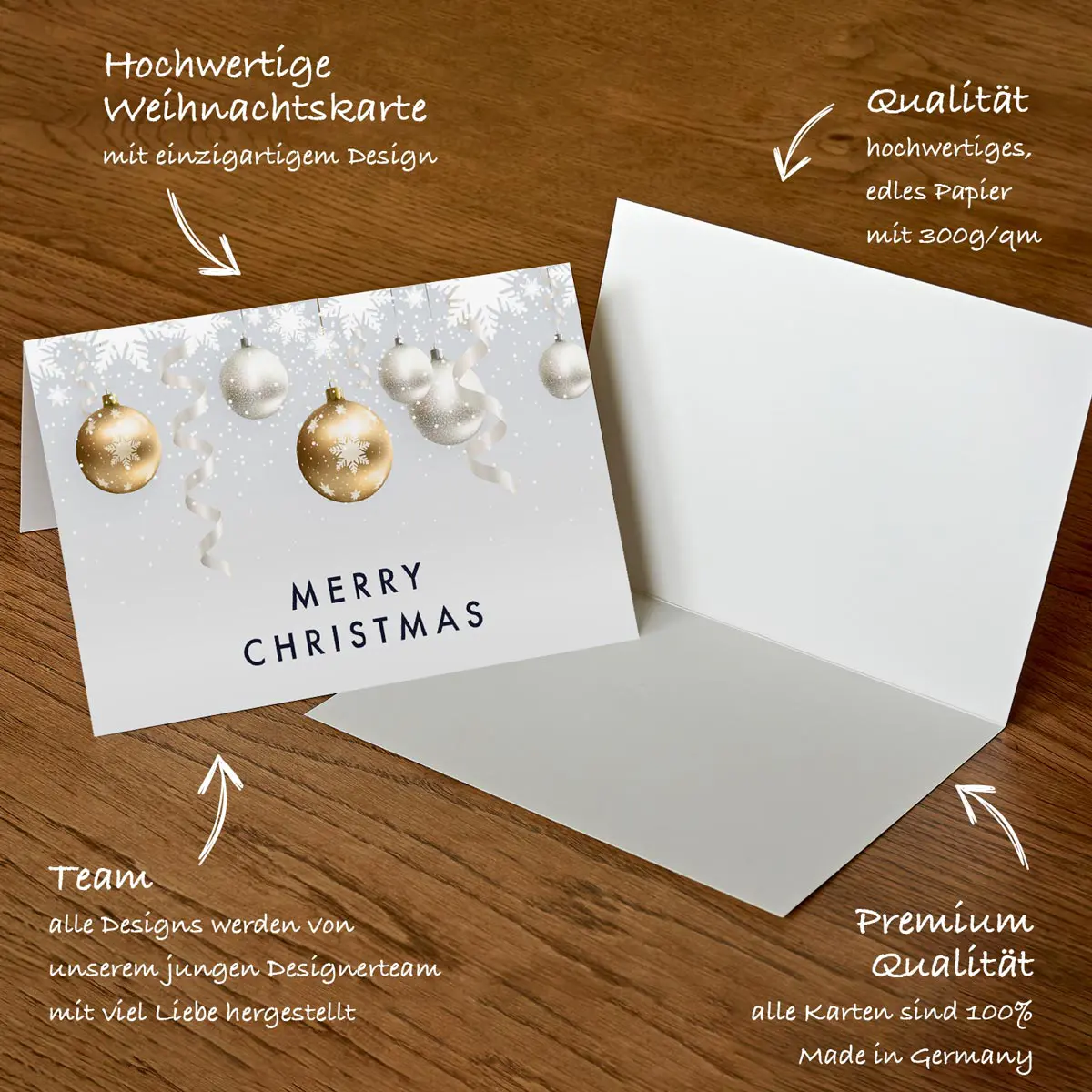 1 edle Weihnachtskarte – Klappkarte 12 x 18cm Motiv schöne Weihnachtskugeln