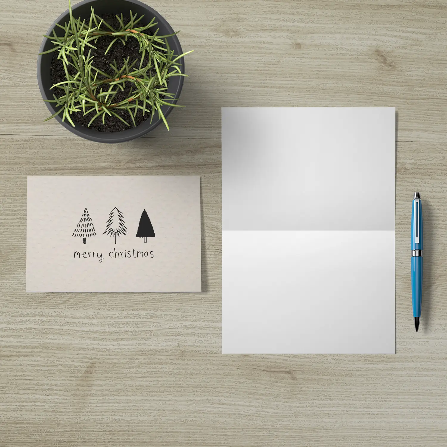 1 minimalistische Weihnachtskarte- Klappkarte 10,5×14,8cm – 3 Tannenbäume1 minimalistische Weihnachtskarte- Klappkarte 10,5×14,8cm – 3 Tannenbäume